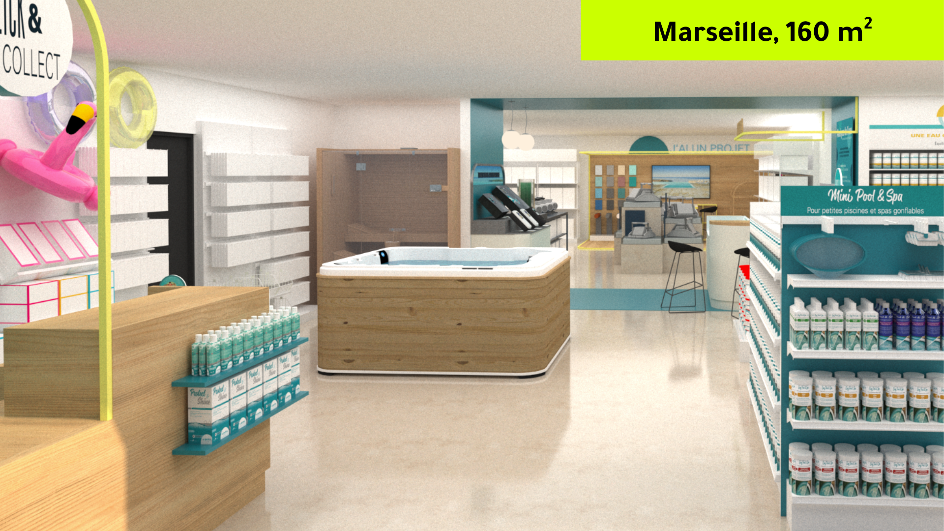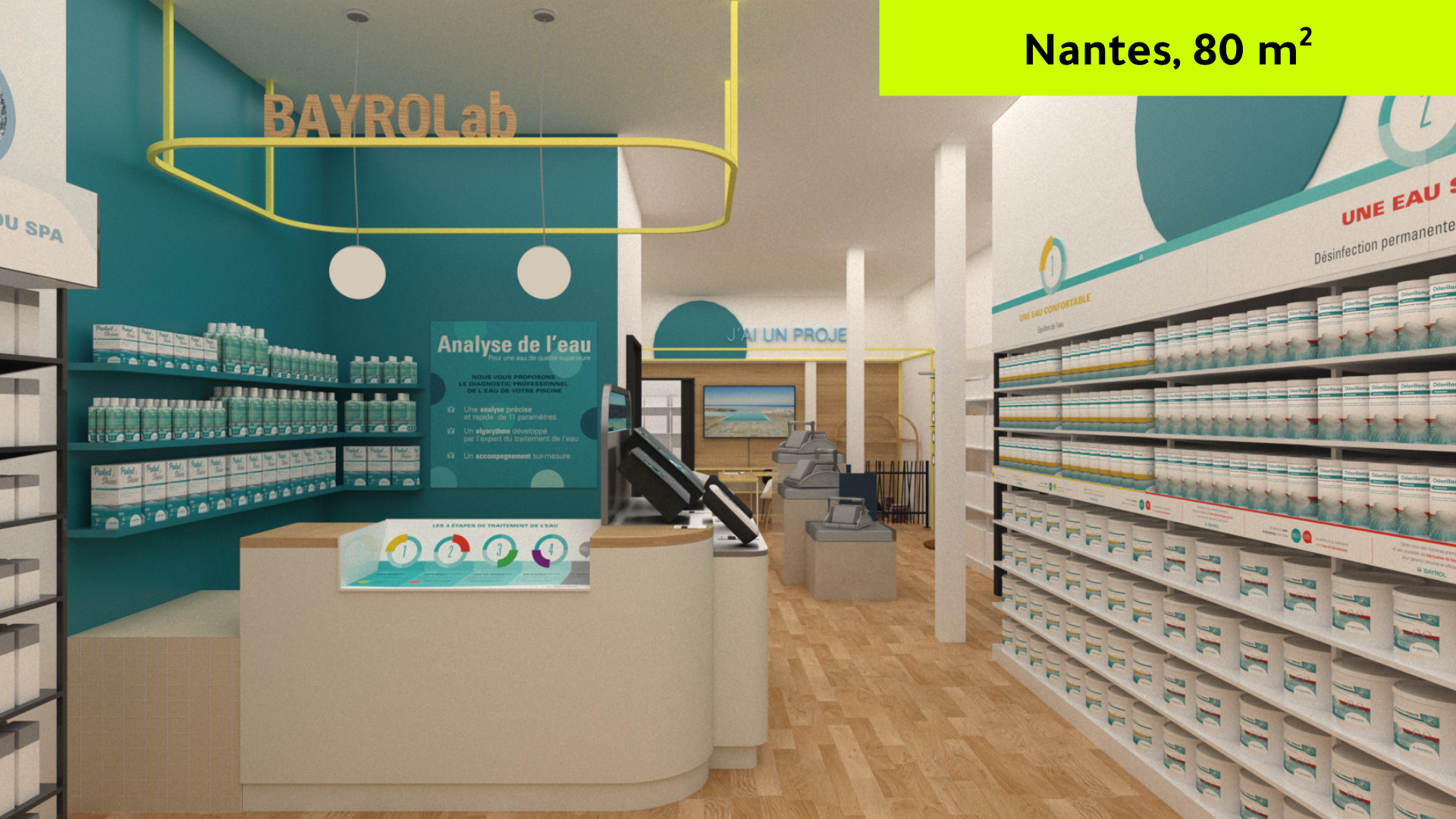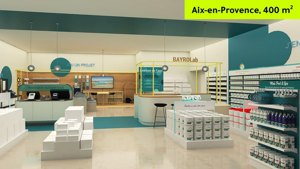 Le magasin idéal selon Bayrol, 3 parcours clients optimisés autour des 3 piliers du concept, lieux de relation de conseil, de projet et commerciale avec les clients, au service de l'offre produits et service.