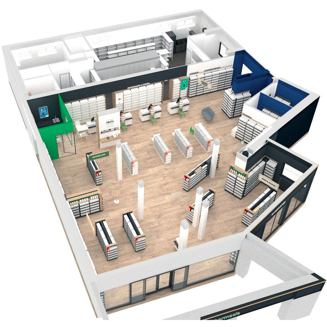 La mission confiée par Hello Pharmacie à Next Retail Design était de fédérer des pharmaciens autour d’un concept d’enseigne normalisé qui valorise les différences du groupement (conseils et formations), accompagné d’une optimisation des coûts.
