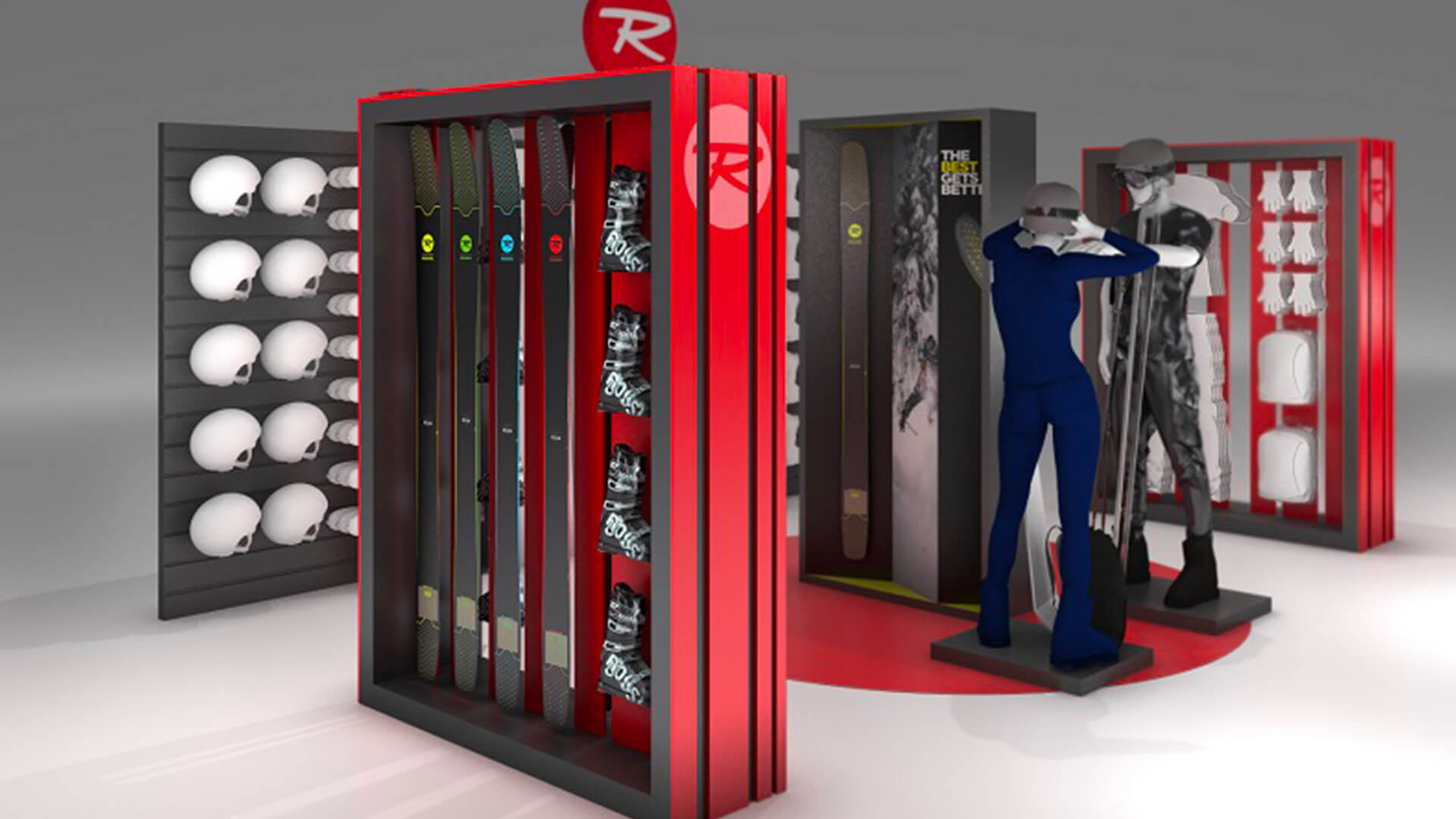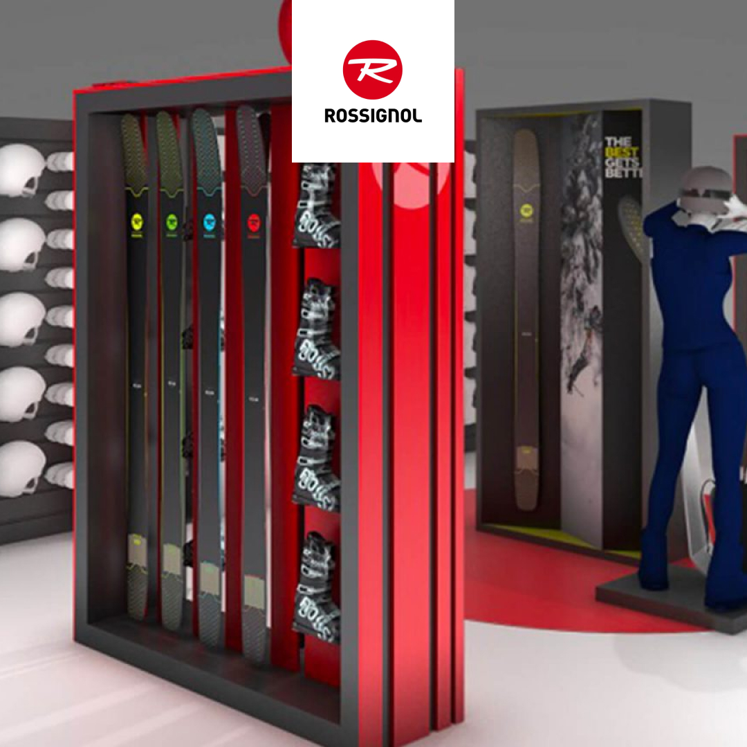 Maîtriser le merchandising de l’offre et le relais des investissements en  communication des marques dans un réseau indépendant. Next Retail Design a été missionné par le Groupe Rossignol pour créer un support d'expression de la marque et de vente en corner en France et à l'international. Le concept a été décliné dans un pro-shop Rossignol en Italie.
